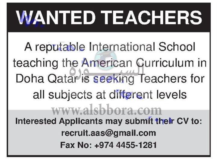 تعلن مدرسة خاصة سلطنة عمان عن وظائف جديدة للمعلمين وذلك في المواد التالية: