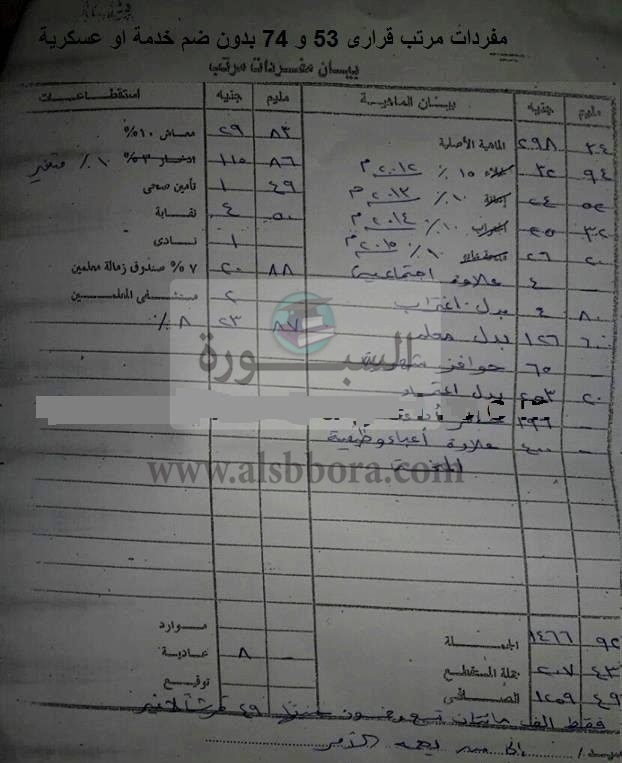 - مفردات مرتب قرار 53 وقرار 74 اساسى الراتب 298 وصافى الراتب 1259 جنيها فقط لاغير