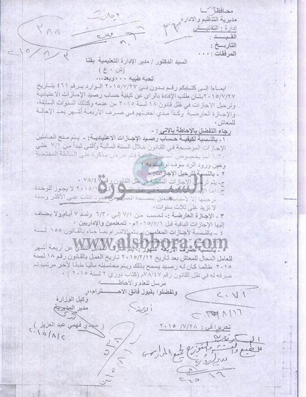 ينشر موقع السبورة فاكس الاجازات الاعتيادية والعارضة وكيفية ترحيل الاجازات للمعلمين وصرف الأربعة شهور للمحالين على المعاش.