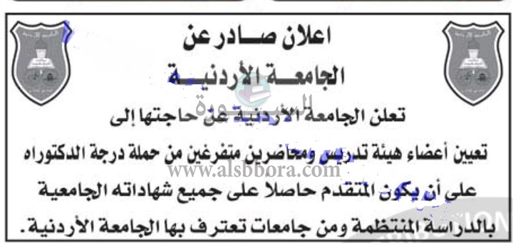 تعلن الجامعة الاردنية بالمملكة الاردنية الهاشمية عن حاجتها الى أعضاء هيئة التدريس، ولمزيد من التفاصيل عبر الاعلان التالى: