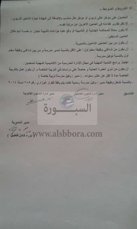 وزارة التربية والتعليم تعلن عن حاجتها الى مدير ووكيل ادارة وموجه عام وأول.. ننشر الشروط المطلوبة ونص الاعلان