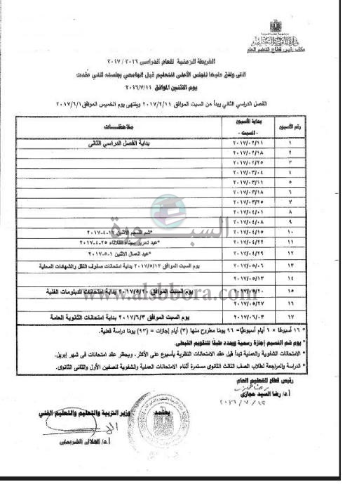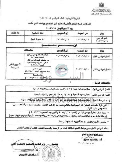 ينشر " موقع السبورة " الخريطة الزمنية الرسمية للعام الدراسي " 2016 - 2017 " شاملة الاجازات ومواعيد الامتحانات وعدد الايام الدراسية الفعلية