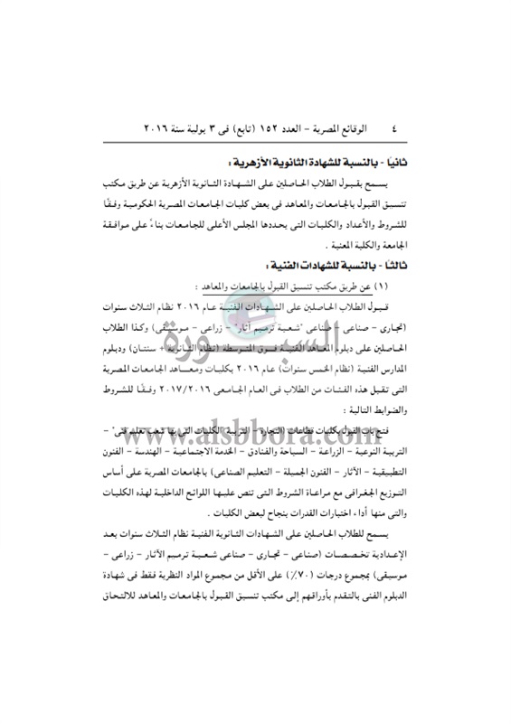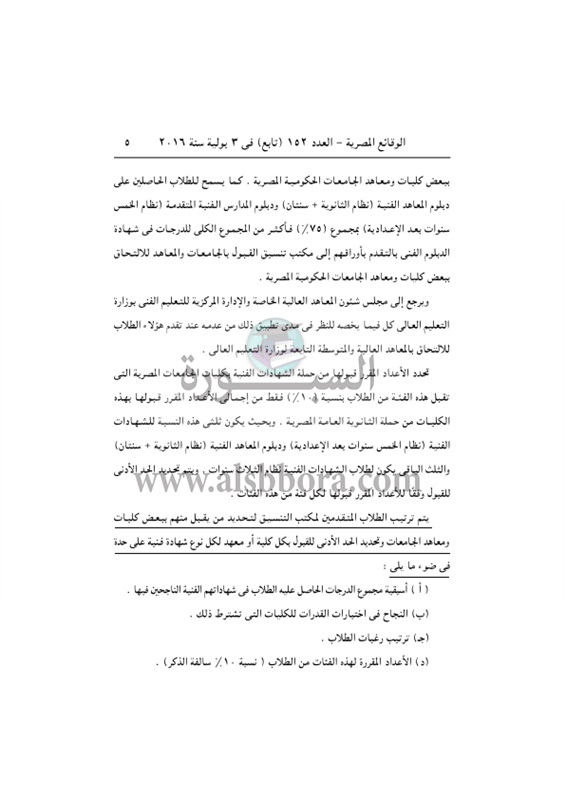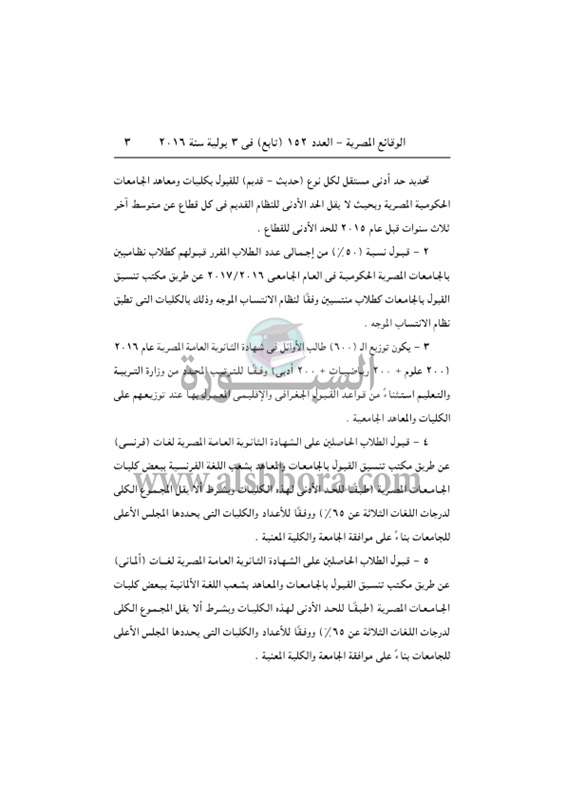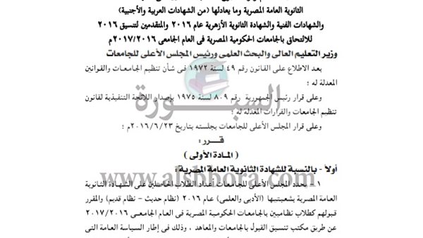 ننشر القرار الوزارى المنظم لضوابط القبول فى الجامعات 2017/2016