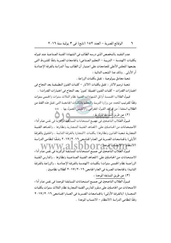 ينشر موقع السبورة القرار الوزارى المنظم لضوابط القبول فى الجامعات 2017/2016.