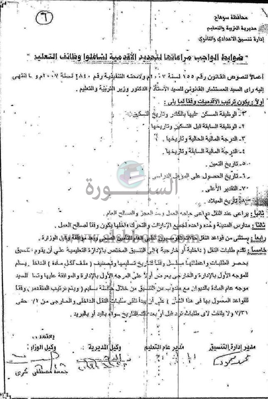 ينشر موقع السبورة القرار الوزارى المتعلق بالضوابط الواجب مراعاتها لتحديد الأقدمية لشاغلوا وظائف التعليم