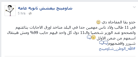 وذكرت الصفحة أن هذه الأوراق تم تصحيحها عند وزير التربية والتعليم شخصيا، وأن كل طالب منهم حصل على مجموع 99%، مؤكدة أنه لن يتم ذكر أسماء هؤلاء الطلاب ضمن الأوائل.
