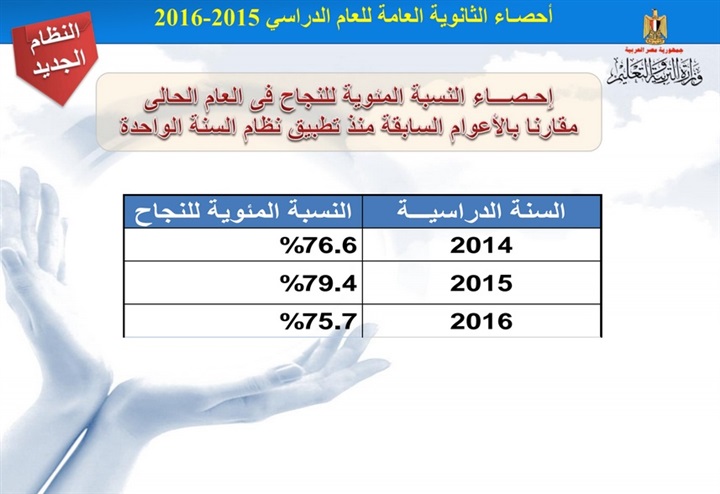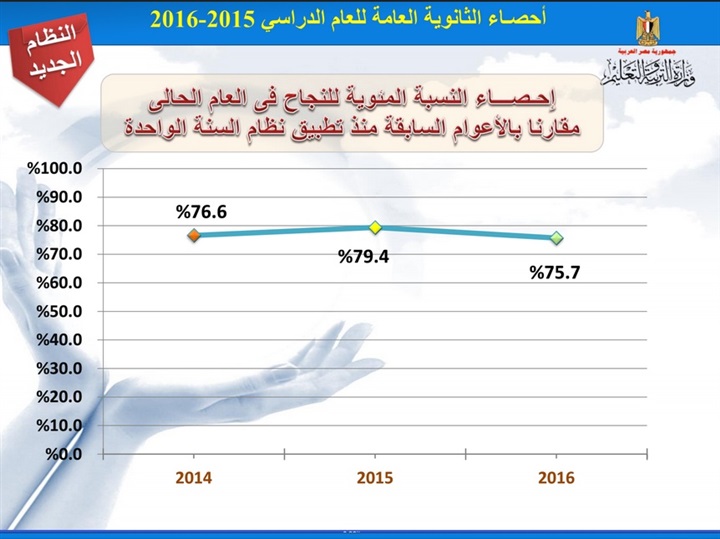 ننشر النسبة المئوية للنجاح في نتيجة الثانوية العامة 2016 مقارنة بالأعوام السابقة