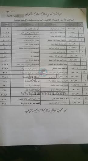 الإسماعيلية اليوم الاثنين اسماء أوائل شهادة الثانوية العامة للعام الدراسي 2016