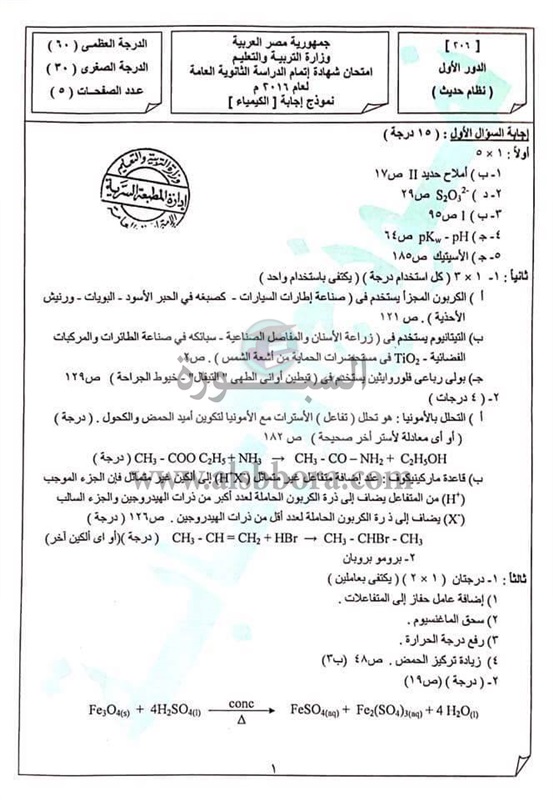 ينشر موقع السبورة الاجابة النموذجية لمادة الكيمياء للثانوية العامة والتى قام الطلاب بآداء امتحانها منذ شهر، وتم اعلان نتيجتها أمس.