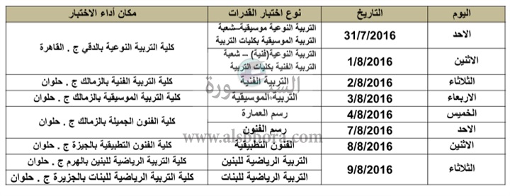وعلى الطالب التوجه الى مقر الكلية التى يرغب فى آداء اختبارات بها فى تمام الساعة التاسعة صباحا ومعه المستندات الآتية: