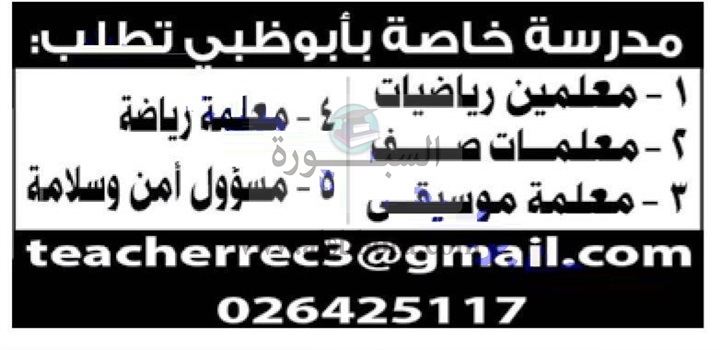 تعلن مدرسة خاصة في أبوظبي بدولة الامارات عن حاجتها للتعاقد مع معلمين وذلك في التخصصات التالية: