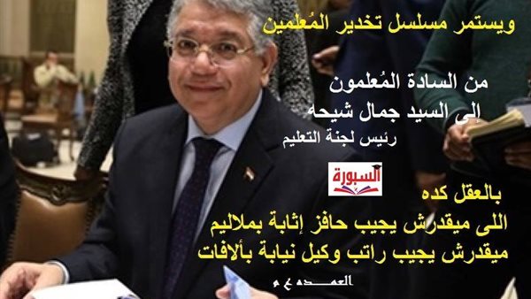قام أحد المعلمين بالرد على السيد جمال شيحة، رئيس لجنة التعليم بمجلس النواب فى رسالة نصها: من السادة المعلمون إلى السيد جمال شيحة رئيس لجنة التعليم: