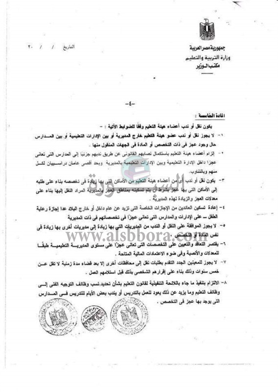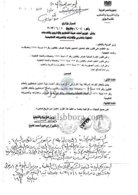 تنشر "السبورة" القرار الوزاري رقم 202 بشأن توزيع هيئة التعليم والإداريين والخدمات المعاونة بالمدارس و الإدارات و المديريات التعليمية.