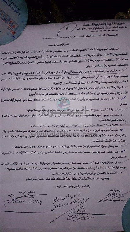 ننشر فاكس منع معلمى الحاسب الآلى الاشتغال بالوظائف الادارية بالمدارس