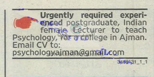 تعلن احدى الاكاديميات بدولة الامارات العربية المتحدة عن حاجتها الى محاضرين، وعلى الراغبين فى التقدم ارسال السيرة الذاتية على الايميل المنشور فى الاعلان التالى: