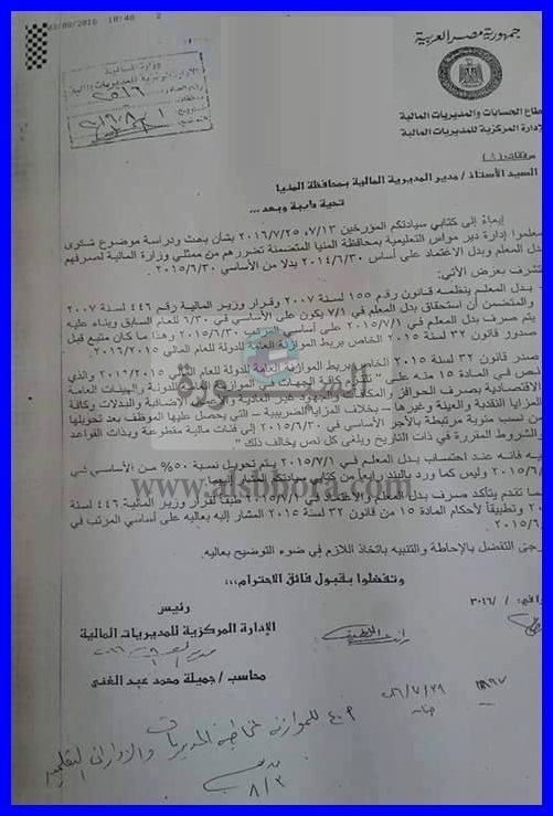 تنشر "السبورة" فاكس وزارة المالية والمرسل لوزارة التربية والتعليم عن كيفية احتساب بدل المعلم وبدل الاعتماد لهذا العام