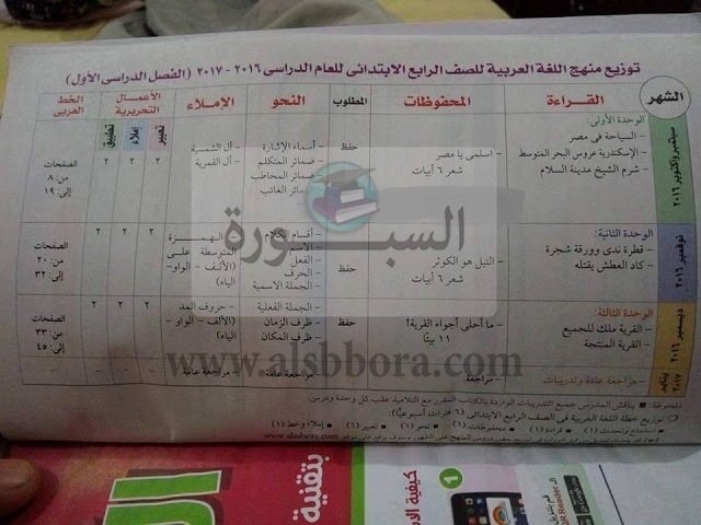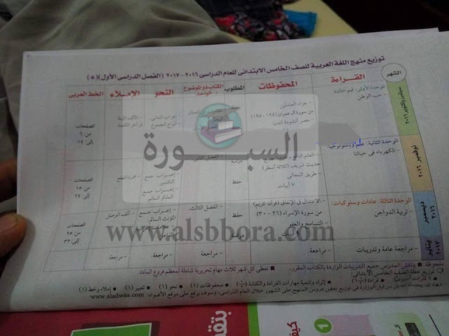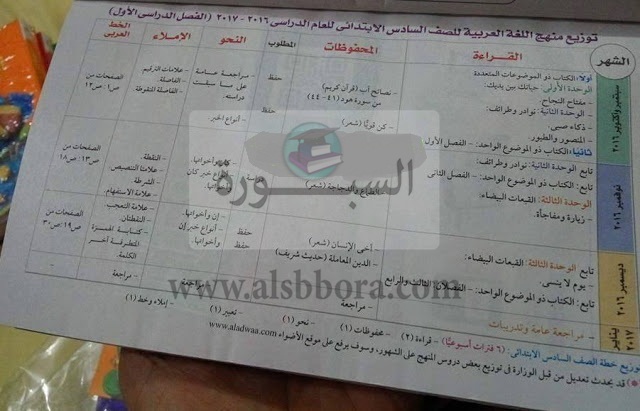 ينشر موقع السبورة التعليمي منهج اللغة العربية لعام 2016/2017.