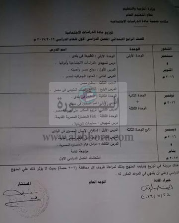 ننشر توزيع مناهج الدراسات الاجتماعية للصفوف الرابع والخامس والسادس الابتدائى