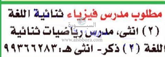 تعلن مدرسة خاصة في سلطنة عمان تعلن عن وظائف جديدة للمعلمين وذلك في المواد المرفقة في الاعلان التالي: