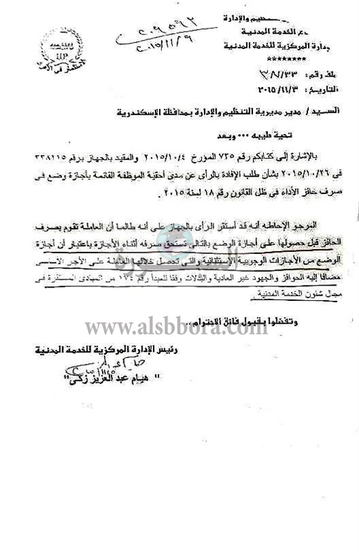 ينشر موقع السبورة رد جهاز التنظيم والادارة بشأن الموظفة الحاصلة على إجازة وضع من حقها الحصول على حافز آداء طالما كانت تتقضاه قبل الحصول على إجازة الوضع.