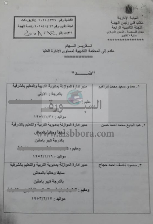 وانتهت التحقيقات إلى إحالة المتهمين الستة للمحكمة التأديبية العليا بعد ثبوت إرتكابهم الجريمة التأديبية ومخالفة القانون وطلبت النيابة الإدارية من رئيس المحكمة تحديد أقرب جلسة لنظر القضية.
