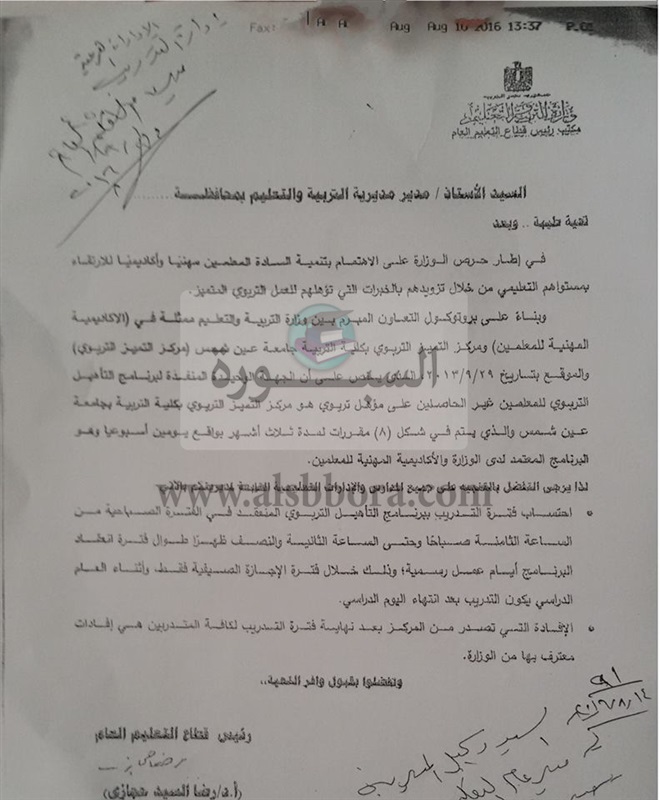 بالمستندات| أحقية المعلمين غير التربويين احتساب فترة التدريب فى مركز التميز التربوى أثناء العطلة الصيفية يوم عمل رسمى