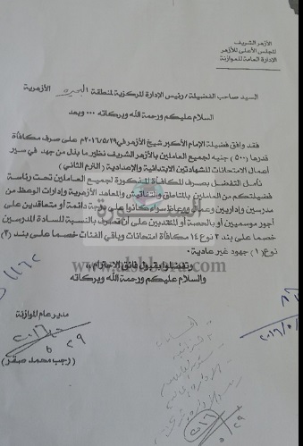 بالمستندات: مكافأة 500 جنيه من شيخ الأزهر لكل العاملين بالمناطق والمعاهد والإدارات الأزهرية