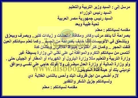 رسالة معلم إلى الرئيس: أنا باخد فلوس كتير وهتبوظ أخلاقى وعشان كده ألتمس منك نقلى إلى وزارة بسيطة مثل البترول.