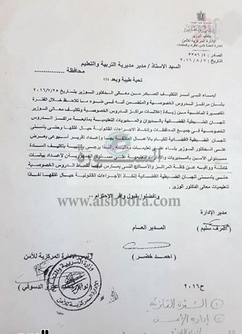 عاجل وبالمستندات|.. الهلالى يطالب مسئولى الأمن بالادارات والمديريات التعليمية بحصر مراكز الدروس الخصوصية والابلاغ عنها