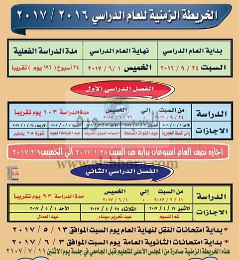 ينشر موقع السبورة التعليمي الخريطة الزمنية للعام الدراسي 2016 / 2017 والصادرة من المجلس الأعلى للتعليم قبل الجامعى.