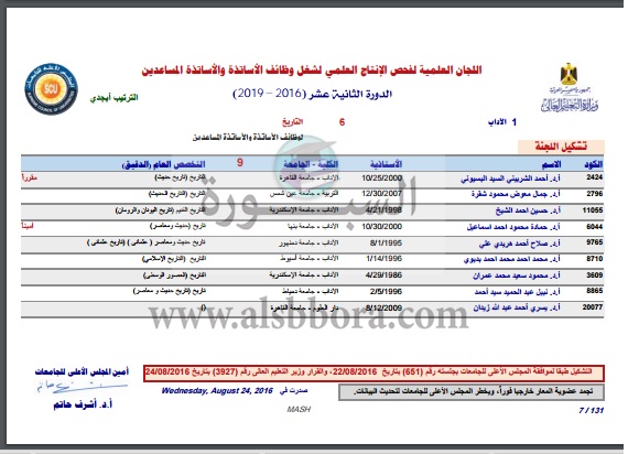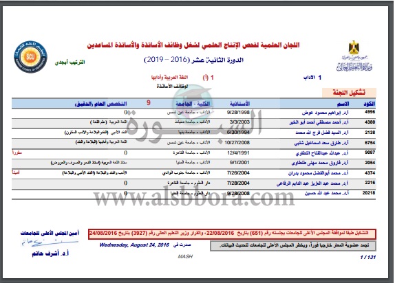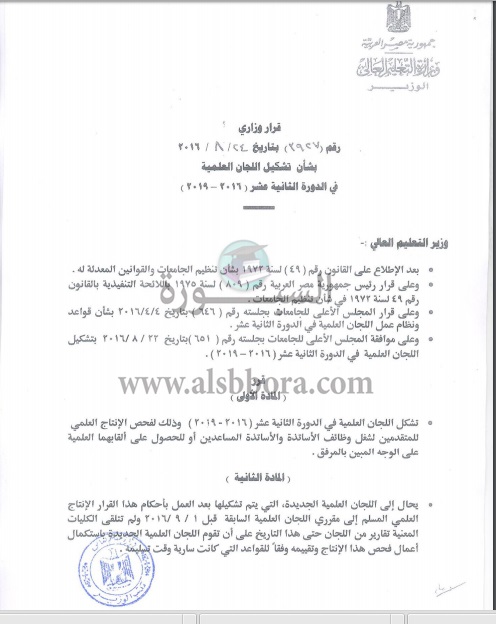 بالاسماء ..ننشر أعضاء لجنة الترقيات بالجامعات الحكومية