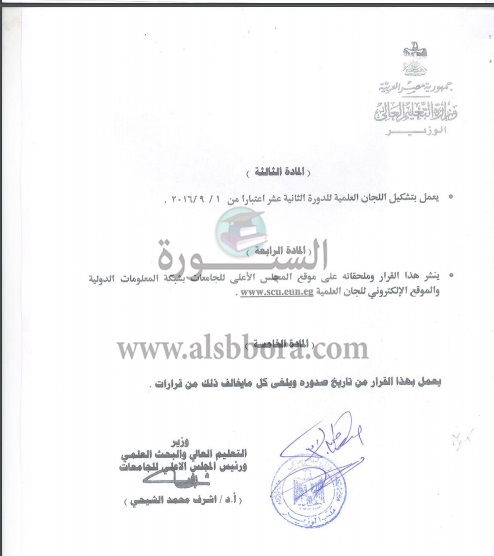 الحكومية على موقع المجلس الأعلى للجامعات ، بعد اعتماد القرار الوزاري وعددهم
