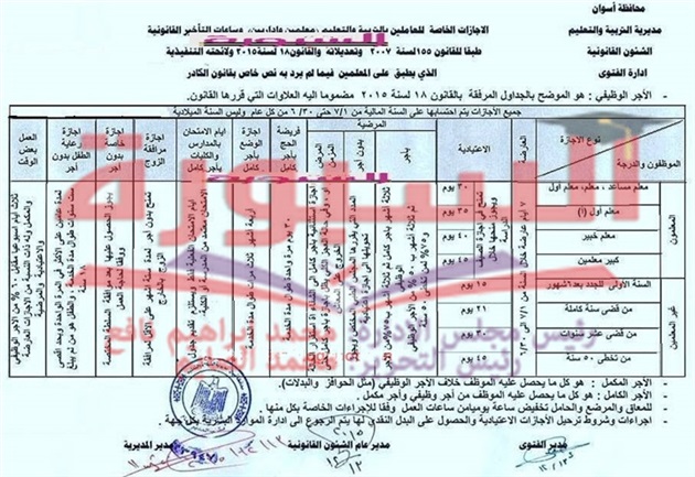 تنشر "السبورة" جدول مطبوع من قبل مديرية التربية والتعليم بمحافظة أسوان يضم الأجر الوظيفى وموضح به العلاوات المضمومة التى قررها القانون 18 لسنة 2015.
