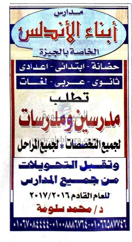 تعلن مدارس "الأندلس" عن وظائف شاغرة للمعلمين والمعلمات في جميع المواد وذلك وفقا للاعلان التالي: