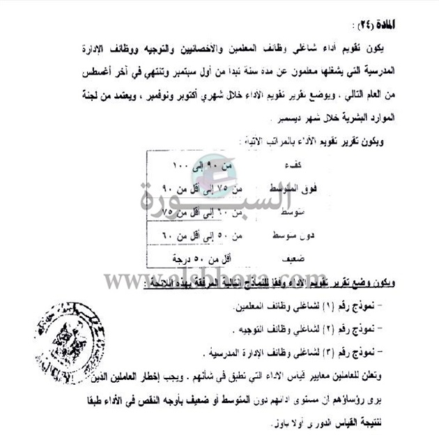 ينشر موقع نص المادة رقم 4، والتى يمون تقويم الاداء لشاغلى المعلمين عن مدة سنة تبدأ من أول سبتمبر وتنتهى فى آخر أغسطس من العام التالى.