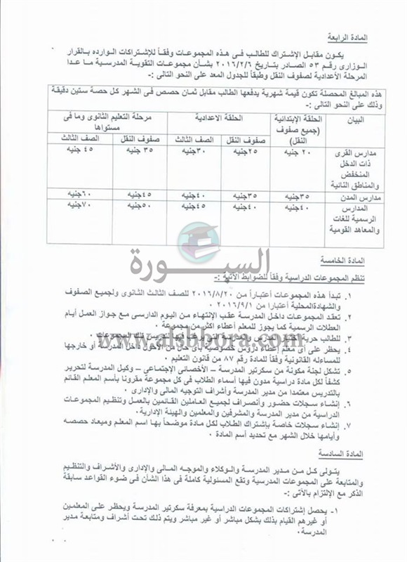 ينشر موقع السبورة اللائحة التنظيمية لمجموعات التقوية المدرسية داخل المدارس والتى أقرها محافظ بورسعيد، وجاءت كالتالى: