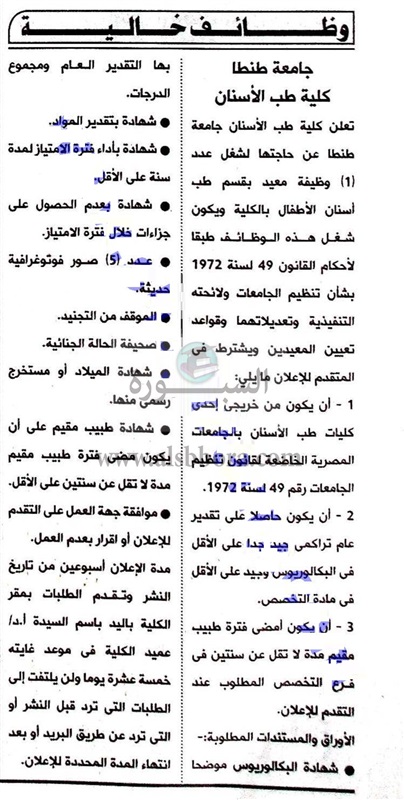 جامعة طنطا تعلن عن وظائف جديدة أعضاء هيئة التدريس"من معيد الي أستاذ".. ننشر نص الاعلان
