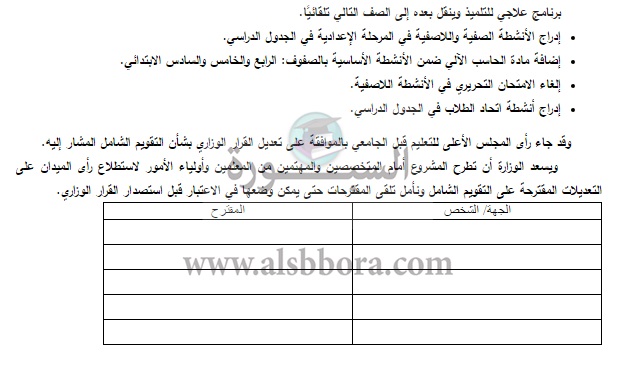 تم عرض التعديلات المقترحة على القرار الوزاري المشار اليه على المجلس الأعلى للتعليم قبل الجامعي وذلك على النحو الآتي: