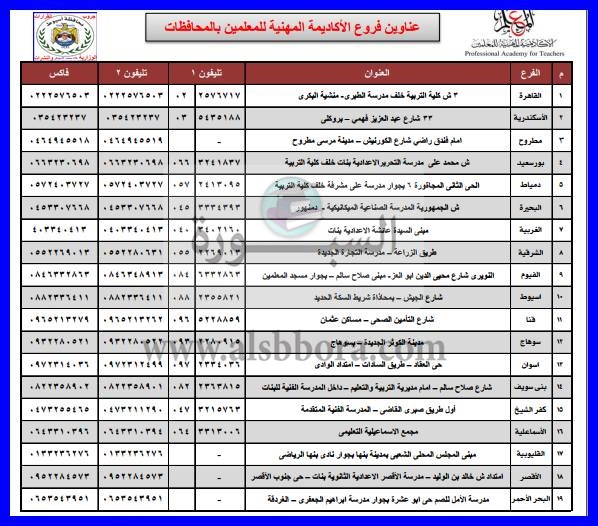 ننشر عناوين فروع الاكاديمية المهنية للمعلمين فى جميع المحافظات