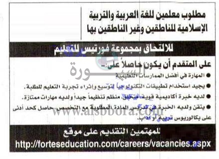 تعلن مدرسة خاصة في دولة الاماراتية تعلن عن وظائف شاغرة للمعلمين وذلك وفقا لنص الاعلان التالي: