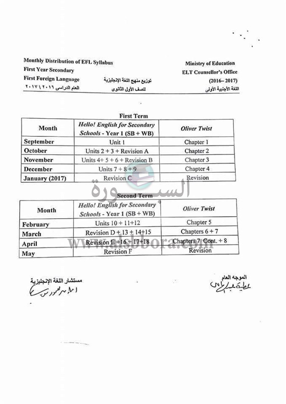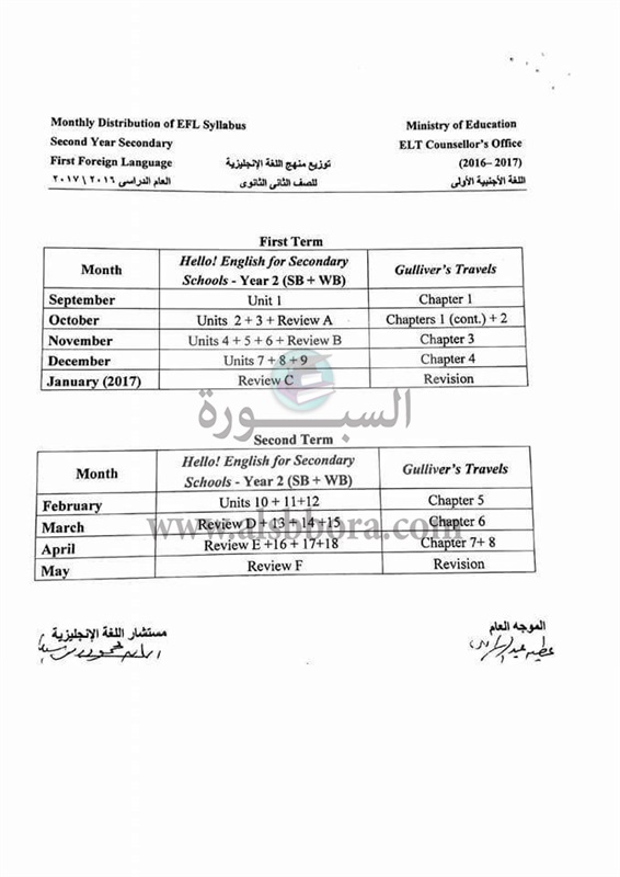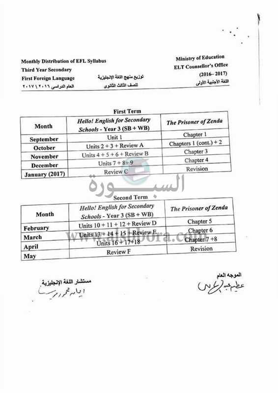 ينشر موقع السبورة توزيع منهج اللغة الانجليزية للمرحلة الثانوية "الصف الأول والثانى والثالث" للعام الدراسى 2017/2016.