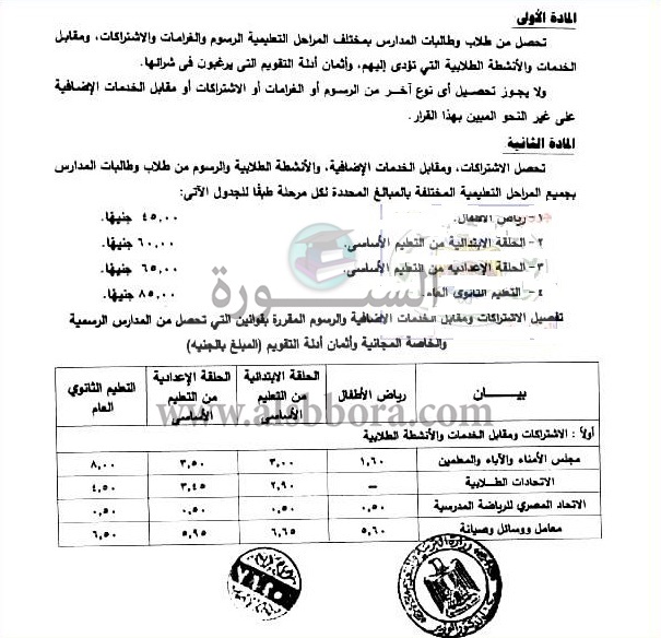 عاجل.. "التعليم" تعلن عن المصروفات الدراسية للعام الجديد 2017/2016.. رياض الاطفال 45.. والثانوية العامة 85 جنيها