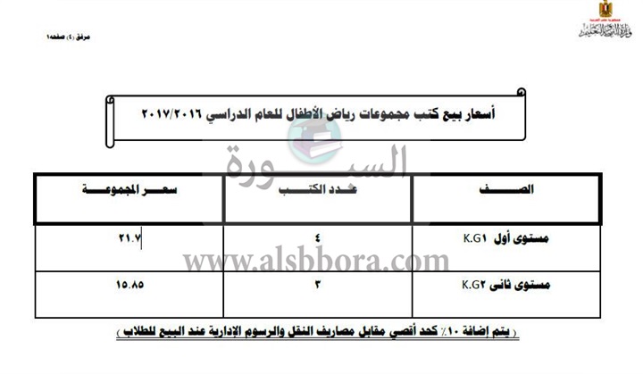 ينشر موقع السبورة اسعار بيع كتب مجموعات رياض الأطفال للعام الدراسى 2017/2016، وذلك فى الجدول التالى: