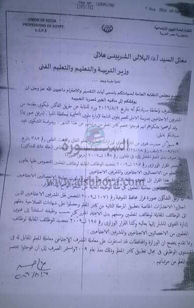 واشتكى جميع الاخصائيين الاجتماعيين المديرية المتعنتة فى صرف الكادر مستشهدين بمديريات أخرى تقوم بالصرف، ولديهم من الأوراق والأدلة ما تثبت صحة كلامهم نستعرضها فيما يلى: