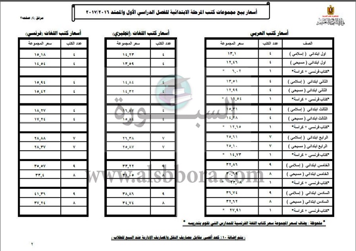 ينشر موقع السبورة اسعار كتب مدارس اللغات للمرحلة الابتدائية للعام الدارسى الجديد 2017/2016، ولمزيد من التفاصيل عبر الجدولين المتواجدين ادنى الخبر.