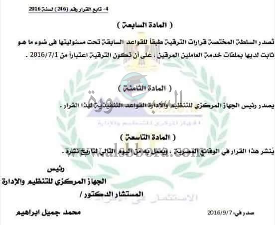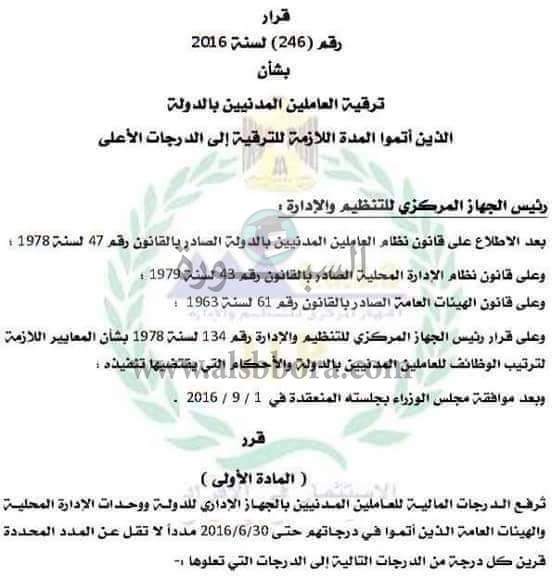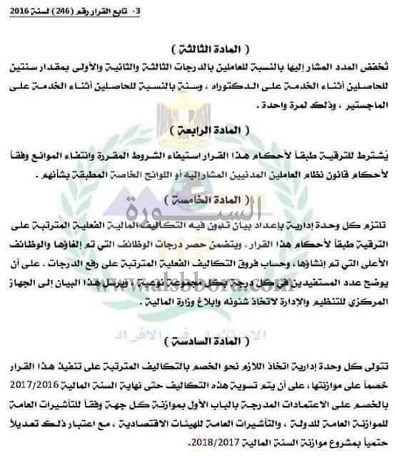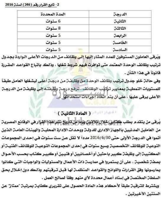 تنشر "السبورة" نص االقرار 246 الخاص بتخفيض المدد البينية للترقية للعاملين بالدولة واليكم نص القرار: