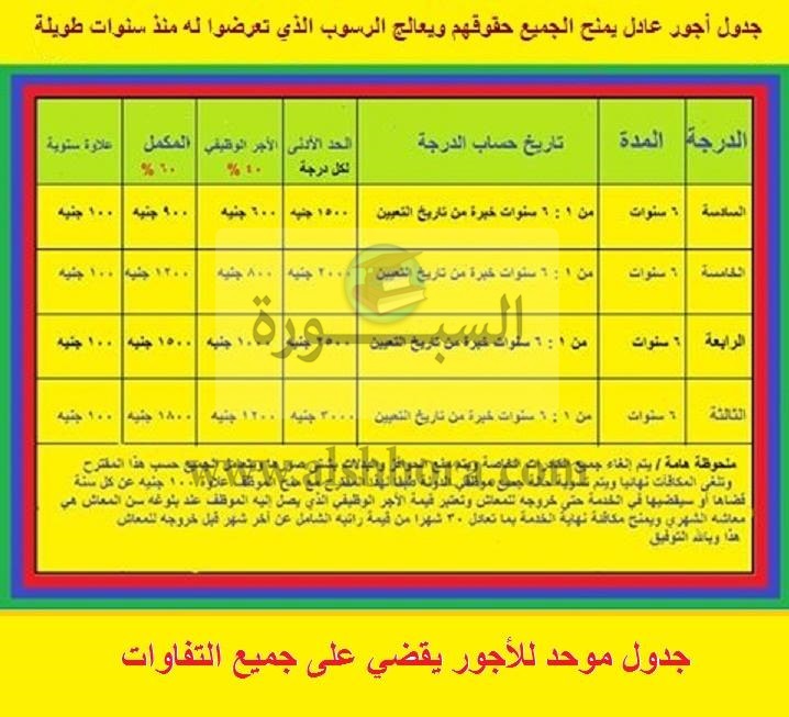 ينشر موقع السبورة مقترح جدول أجور من قبل المعلم حسن أحمد الدولى مدرس الرياضيات بوزارة التربية والتعليم، حيث حدد أجور الحد الأدنى للدرجة السادسة 1500 جنيه، بينما حدد الخامسة بحد أدنى 2000 جنيه، واليكم الجدول المفصل بجميع الدرجات.