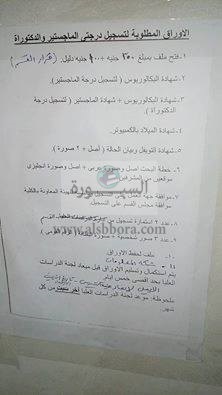 ينشر موقع السبورة الأوراق المطلوبة لتسجيل درجتى الماجستير والدكتوراة.