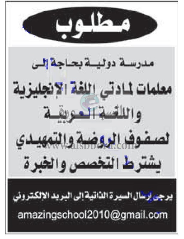 تعلن مدرسة خاصة في دولة قطر عن وظائف شاغرة للمعلمين وفقا لنص الاعلان التالي: