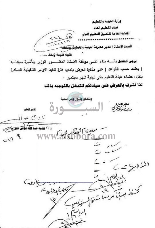 وافق الدكتور الهلالى الشربينى، وزير التربية والتعليم والتعليم الفنى على تمديد فترة تنفيذ الأوامر التنفيذية الصادرة بنقل اعضاء هيئة التعليم حتى نهاية شهر سبتمبر الجارى.